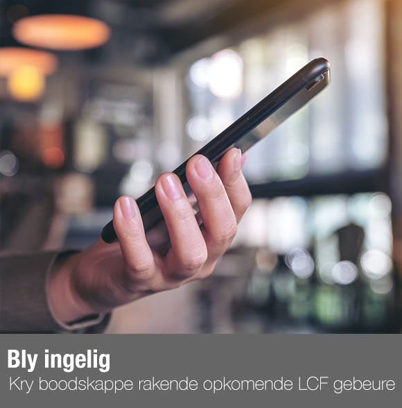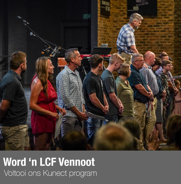 Vind meer uit oor LCF gemeente, die verskillende bedieninge en hoe jy betrokke kan raak. Sondag dienste begin om 9h30. Dis altyd ‘n goeie beginpunt: Kom woon ‘n Sondag erediens by en kom ervaar LCF vir jouself.